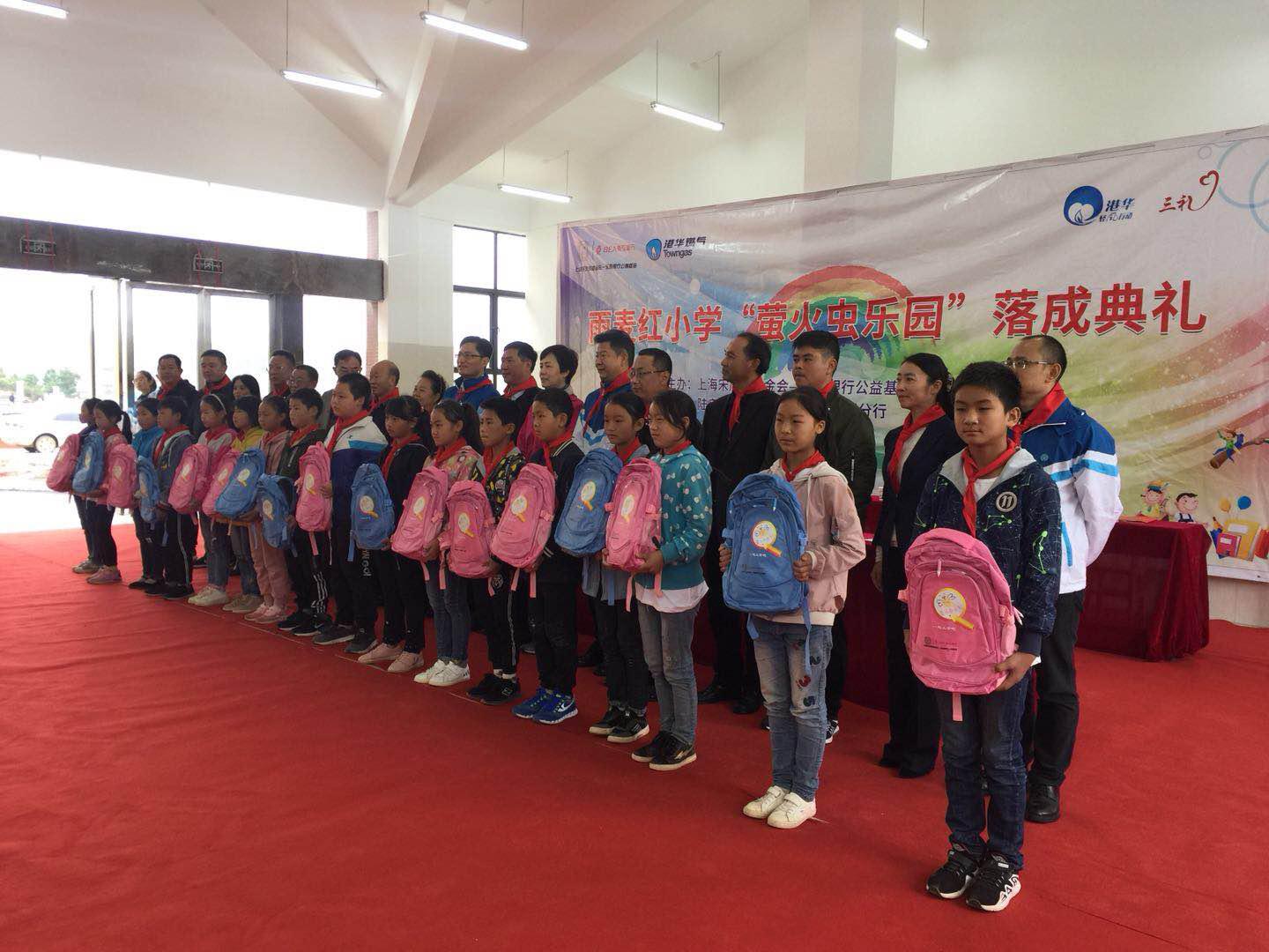 雨麦红小学始建于1943年,现有教学班6个,在校学生238人,新筹建的教学楼已于近期投入使用,但仍有部分设施配套未能满足师生们的教学需求。在了解到雨麦红小学的实际困难后,港华燃气集团携手东亚银行公益基金“萤火虫计划”,投入近20万元捐建了一间“萤火虫乐园”电教室,为师生们提供了全新的电脑套装、课桌椅及投影音响等电教设备一批。此外,活动还捐赠了250个“萤火虫60包裹”(内含实用文具和工具书等学习用品)、5个爱心书架和1500余本图书,改善了学校的教学环境和软硬件设施。