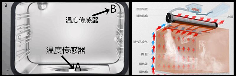 蒸汽发生装置方面,三款蒸烤箱都采用独立式的封闭直喷蒸汽发生装置。现在很多品牌如西门子、博世、美诺、松下等品牌都采用独立的封闭直喷蒸汽发生装置。因为外盘式蒸汽发生装置是利用蒸锅原理制造的,蒸汽一股一股的冒出来,因为底盘加水原理(由内腔温度计B和底部蒸发盘温度计A的温度差来控制加水与否),导致蒸汽不是恒温的。而独立的封闭直喷蒸汽则是全新的蒸汽发生装置,没有这些弊端。
