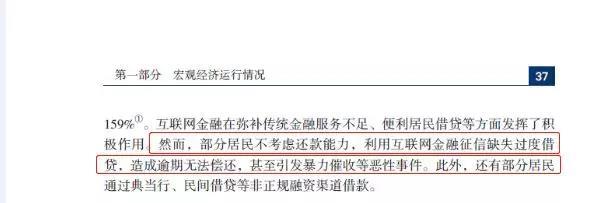 报告也提到,“然而,部分居民不考虑还款能力,利用互联网金融征信缺失过度借贷,造成逾期无法偿还,甚至引发暴力催收等恶性事件。此外,还有部分居民通过典当行、民间借贷等非正规融资渠道借款。”