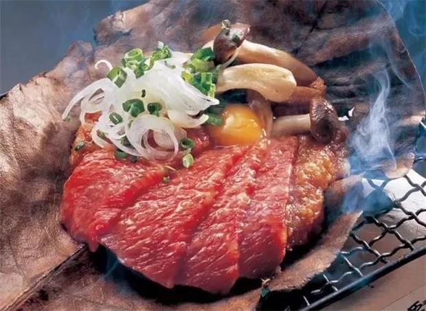 顾名思义,是将味增、葱、菌菇等调味和食材,和生牛肉一起放在朴叶上烤,然后就着米饭一起吃。鲜嫩多汁,入口即化,如此奢侈的下饭菜,必须吃十碗饭!