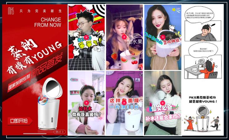 至于时尚行业最难攻克的 “抖音”,湖南娱乐MCN与M K S蒸脸仪也完成了一次精彩的短视频整合营销动作。湖南娱乐围绕MKS新品蒸脸仪,共计发动67个KOL,6700万粉丝覆盖,以抖⾳、⼩红书达⼈为核⼼,社媒,垂类APP为辅助,针对于新媒体发起⼀场“抖爱蒸脸”⼤挑战,通过体验,种草,测评等维度,以内容为核⼼,通过达⼈宣传,让MKS成为2019春节最⽕的⽹红爆款。整体得到3300万的播放量,并获得71万的整体互动数。