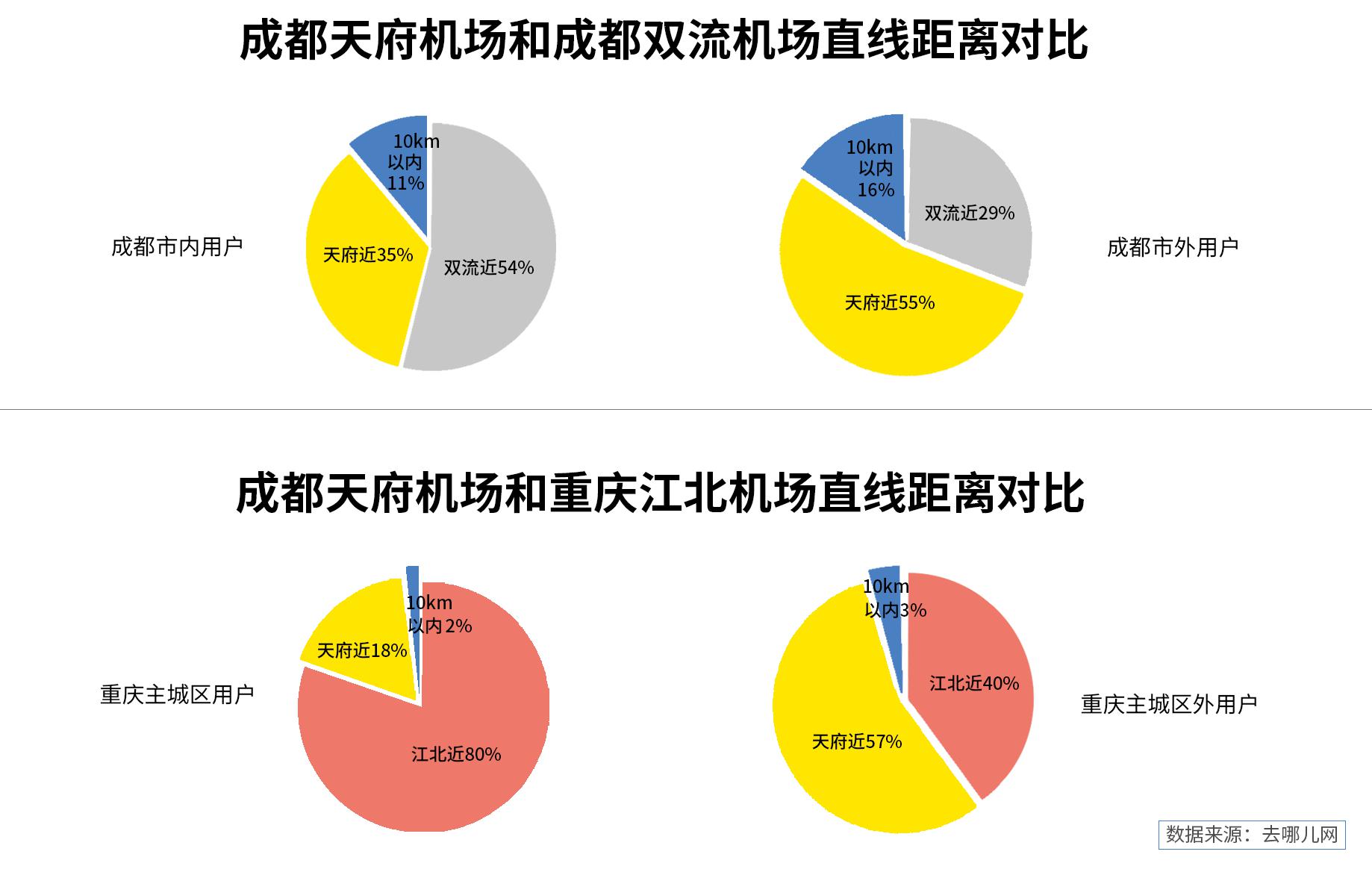 据去哪儿网大数据显示,2019年在从双流机场出发的游客中,常住地为重庆的游客占比达到4%,从江北机场出发的游客当中,常驻地为四川的游客占比达到9%。